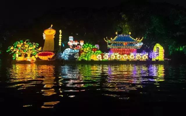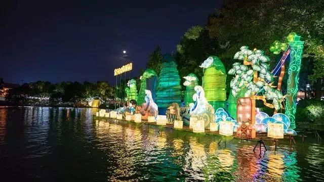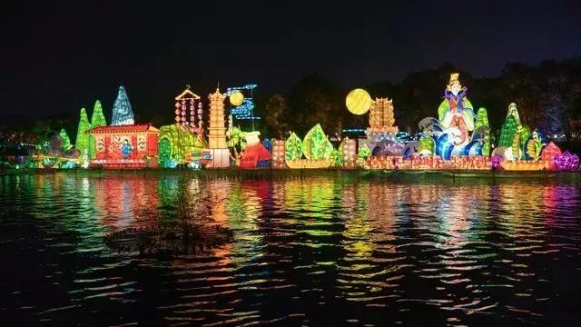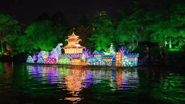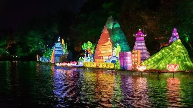 用亮麗的彩燈展示唯美的山水景色