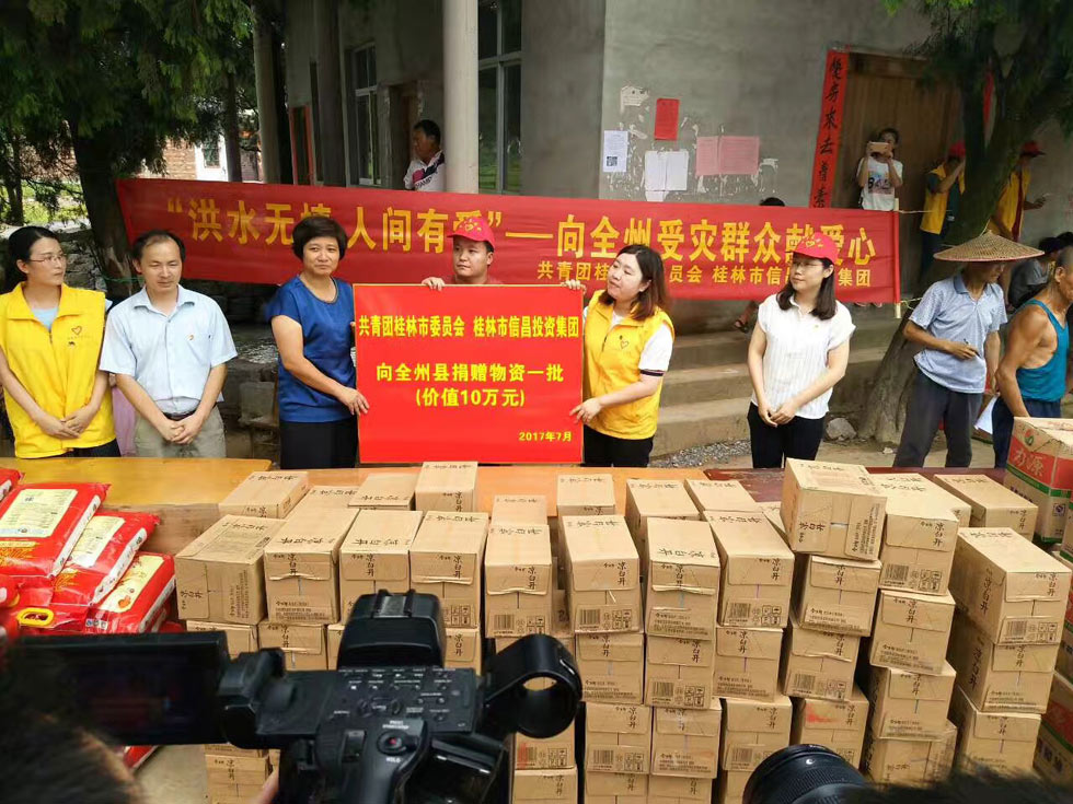 ? ? ?? 一方有難,八方支援。為幫助受災(zāi)群眾渡過難關(guān),信昌集團聯(lián)合桂林團市委開展賑災(zāi)活動對全州重災(zāi)區(qū)進行愛心幫扶。