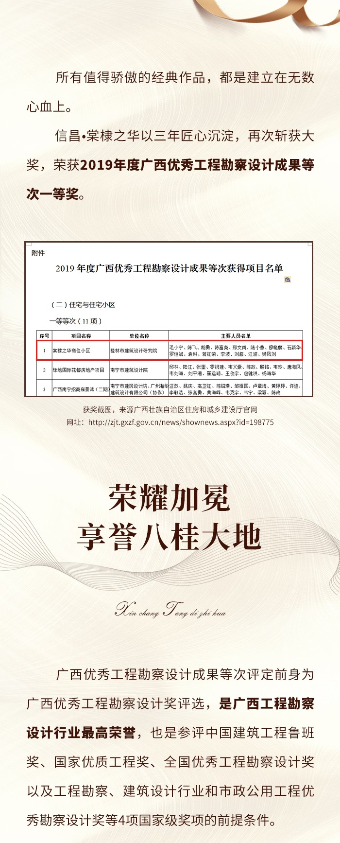 再斬殊榮!棠棣之華囊獲2019年度廣西優(yōu)秀工程勘察設(shè)計成果等次一等獎